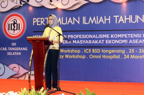 Walikota Tangsel Airin Rachmi Diany, pembicara di Pertemuan Ilmiah Tahunan IDI Tangsel. (ist)