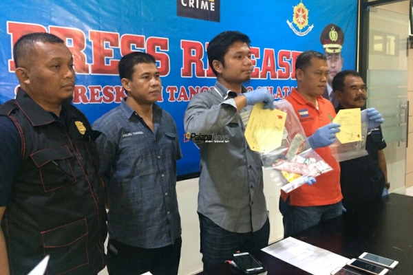 Palapanews.com- Sat Reskrim Polres Tangerang Selatan menggelar konferensi pers terkait meninggalnya E (25), sebagai pemandu lagu di CC Karaoke, Ruko Golden Boulevard, BSD, Kota Tangsel, Sabtu (23/9/2017). Pasalnya, E diketahui meninggal akibat sakit lambung kronis.