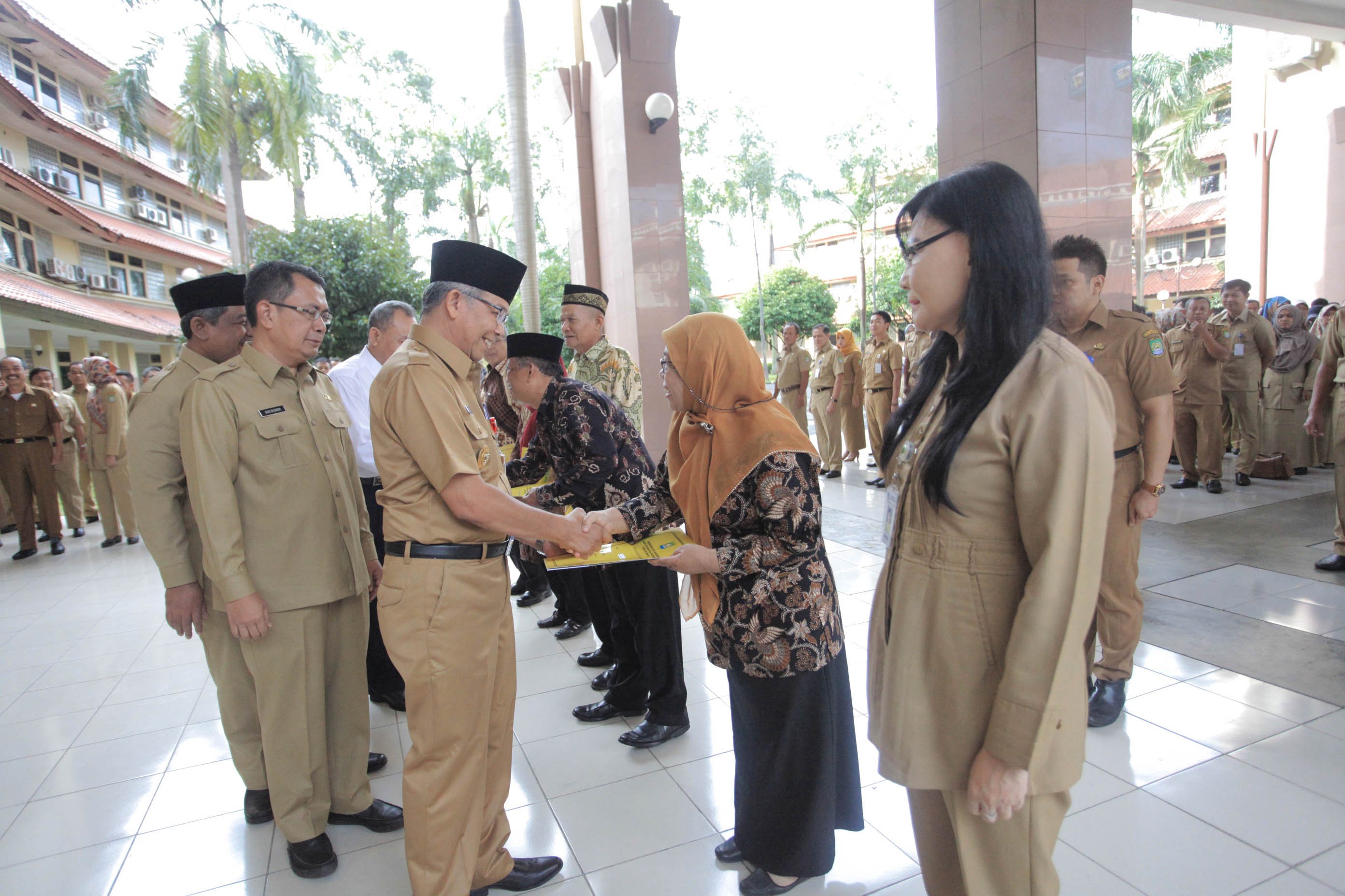 Palapanews.com- Gedung Pusat Pemerintahan Kota Tangerang jadi salah satu momen pemberian SK pensiun dan SK kenaikan pangkat saat pelaksanaan apel pagi yang dilakukan secara rutin setiap harinya.