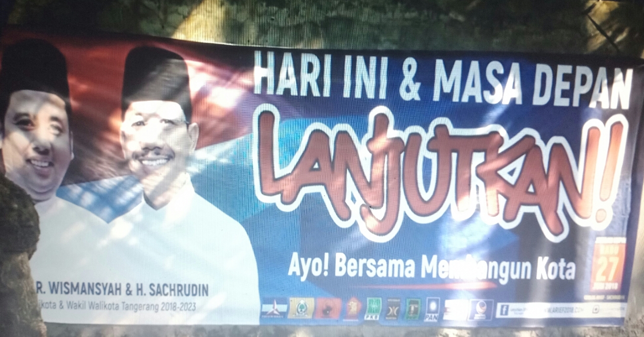 Palapanews.com- Logo partai pengusung pasangan calon Walikota, Arief R Wismansyah dan Wakil Walikota Tangerang, Sachrudin terbalik dalam alat peraga yang tersebar dibeberapa titik di Kota Tangerang.