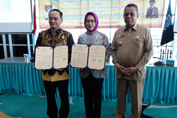 Upaya itu, ditandai dengan Memorandum of Understanding (Mou) Piagam Kerjasama tentang Penanganan dan Penyelesaian Masalah Hukum Bidang Perdata dan Tata Usaha Negara di Aula lt 4 Balaikota Tangsel, Ciputat, Senin (26/3).