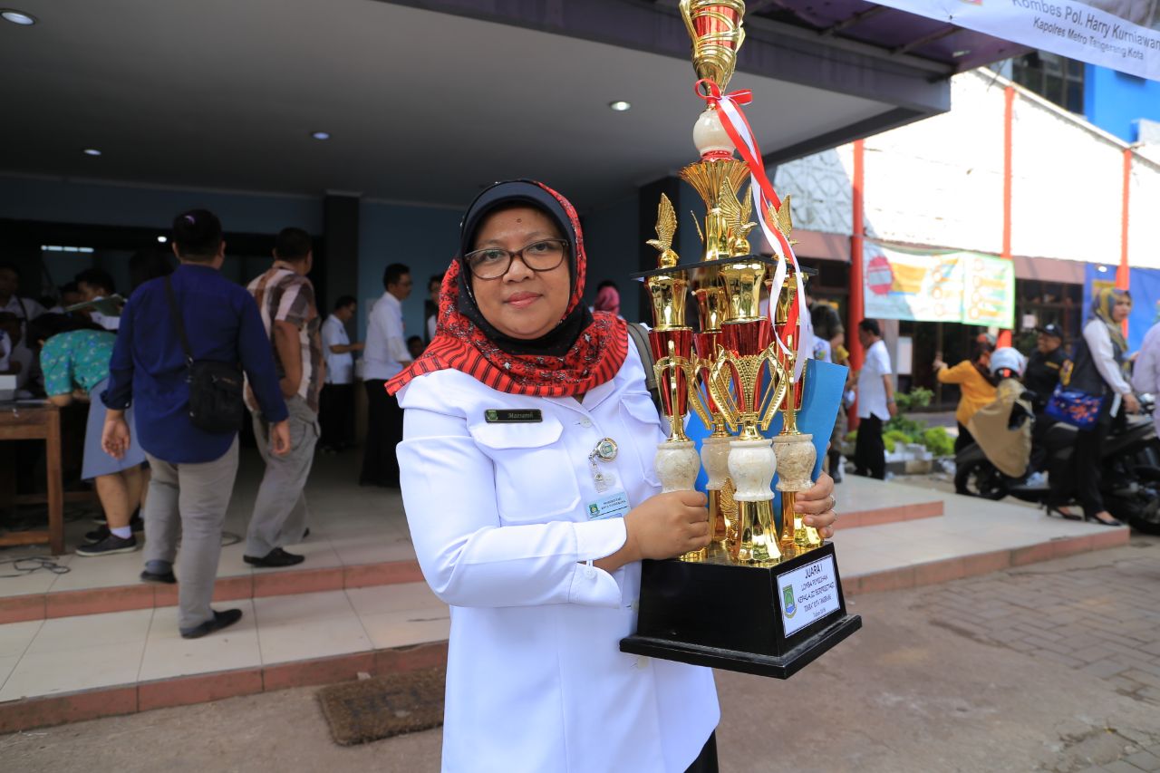 Palapanews.com- Mendapat predikat sebagai Juara ke-I, Kepala Sekolah berprestasi se-Kota Tangerang, membuat wanita ini selalu bersyukur. Bukan hanya itu saja, Kepala Sekolah SD Gebang Raya ini juga menjadikan Hari Pendidikan Nasional sebagai motivasi serta memacu bagi guru-guru lain, Selasa, (02/4).