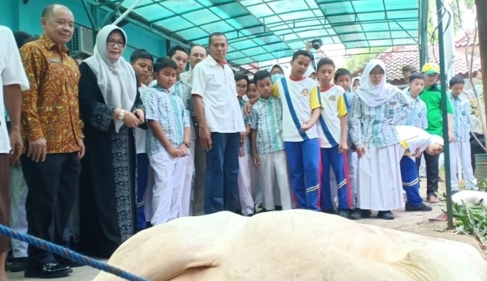 Palapanews.com- Dalam rangka Hari Raya Idul Adha, SMP Negeri 4 Kota Tangerang Selatan (Tangsel) melaksanakan kurban di lingkungan sekolah pada Jumat (23/8), dengan tujuan sebagai pembelajaran kurban bagi para siswa. Sebanyak 2 ekor sapi dan 3 ekor kambing di kurbankan atas nama siswa yatim dan kurang mampu.