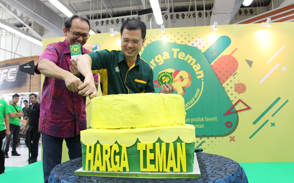 Peluncuran Program HARGA TEMAN, berlangsung Kamis, 30 Oktober 2018, di Giant Ekstra BSD Tangerang. Hadrianus Wahyu Trikusumo, Direktur dan Stefanus Mulianto, Direktur Operasional Giant melakukan pemotongan kue sebagai simbolis peluncuran program tersebut.