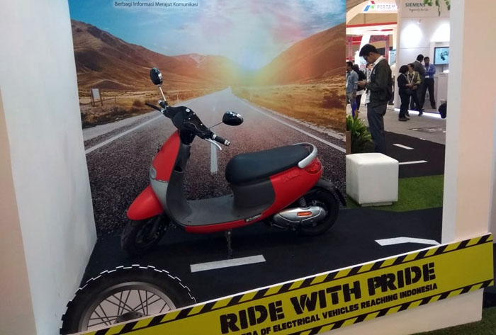 “Motor ini masih prototype produk kerjasama produsen otomotif Viar dengan Perusahaan Listrik Negara (PLN), ngak dijual,” terang Hardito, salah satu petugas di stand PLN.