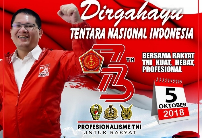 Calon Anggota Legislatif (Caleg) DPR RI Dapil VI Jawa Barat (Jabar), Ferry Batara mengucapkan selamat HUT TNI Ke-73. Ia mengaku bangga dengan TNI yang selama ini tetap solid menjaga keutuhan Negara Kesatuan Republik Indonesia (NKRI).