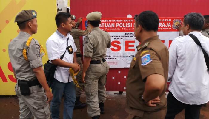 Palapanews.com- Tidak memiliki Izin Mendirikan Bangunan (IMB), pembangunan proyek Mall Paradise City Serpong yang berada di Jalan Raya Puspiptek, Setu, Tangerang Selatan (Tangsel) disegel oleh Satpol PP Tangsel, Rabu (19/12/2018) sore.