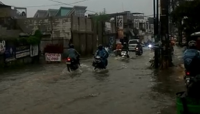 Di ruas jalan ini, air menggenangi dua lajur jalan. Kondisi ini mengakibatkan sejumlah pengendara yang melintas harus melambatkan laju kendaraannya. Belum lagi, sejumlah pemotor terlihat mulai mendorong motornya lantaran mogok.