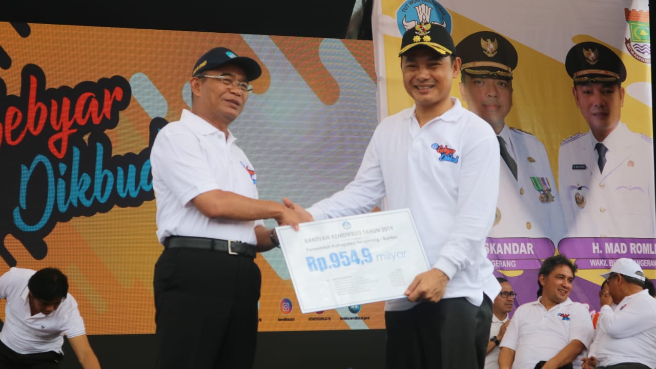 Palapanews.com- Menteri Pendidikan dan Kebudayaan (Mendikbud), Muhajir Effendy menyerahkan bantuan dana pendidikan sebesar Rp954,9 miliar kepada Kabupaten Tangerang.