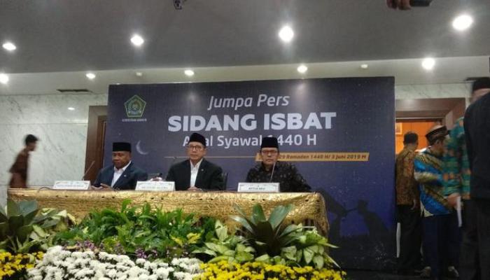 Palapanews.com- Kementerian Agama (Kemenag) bersama sejumlah pihak melakukan sidang isbat penetapan Hari Raya Idul Fitri 1440 Hijriah di Kantor Kemenag, Jakarta, Senin (3/6/2019). Hasilnya, berdasarkan pemantauan hilal di 33 provinsi di Indonesia, Hari Raya Idul Fitri 1440 H jatuh pada Rabu, 5 Juni 2019.