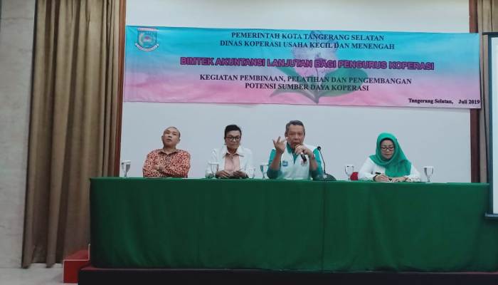 Palapanews.com- Sebanyak 70 pengurus koperasi yang ada di Kota Tangerang Selatan (Tangsel) mengikuti Bimbingan Teknis (Bimtek) penyusunan akuntasi lanjutan. Kegiatan yang diprakarsai Dinas Koperasi dan Usaha Kecil Menengah (UKM) setempat ini digelar di Hotel Marilyn, Serpong, Rabu (24/7/2019).