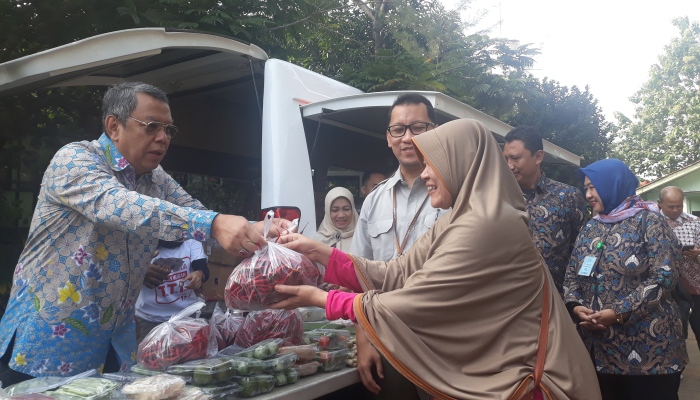 Palapanews.com- Dinas Ketahanan Pangan, Pertanian dan Perikanan (DKP3) menggelar Operasi Pasar Murah di Lapangan Kantor DKP3 Tangsel, Serpong, Tangsel, Kamis (1/8/2019) pagi. Dalam bazar tersebut, terlihat Wakil Walikota Tangsel Benyamin Davnie berjualan melayani warga yang membeli sayuran, terutama cabai merah.