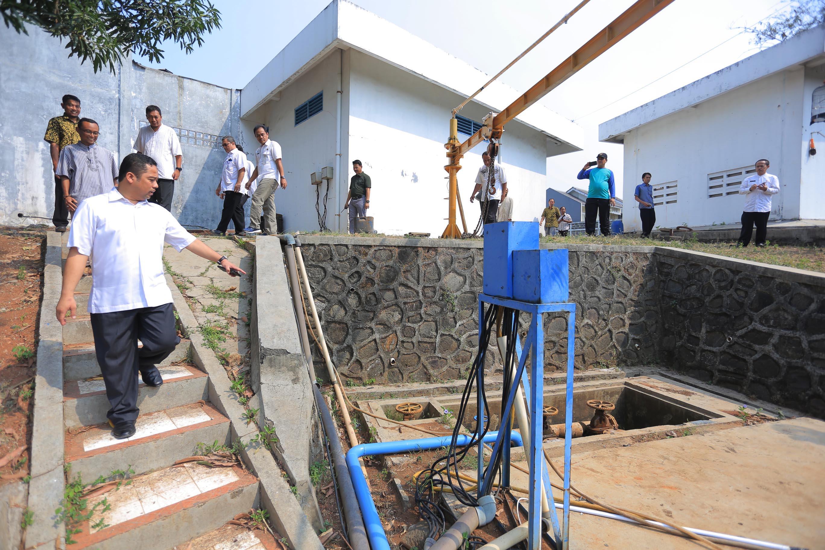 Arief juga turun langsung untuk mengecek kualitas air dalam reservoir tank yang menjadi tempat penampungan air bersih yang telah diolah sebelum didistribusikan kepada pelanggan.