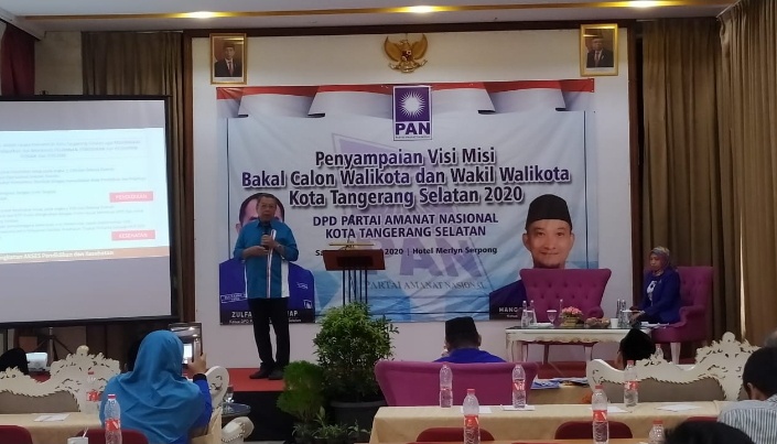 Palapanews.com- Sebagai salah satu Bakal Calon Walikota dan Wakil Walikota petahana, Benyamin Davnie atau kerap disapa Bang Ben menyampaikan visi dan misinya di hadapan panelis Partai Amanat Nasional (PAN) di Hotel Marilyn, Serpong Utara, Tangsel, Sabtu (25/1/2020).