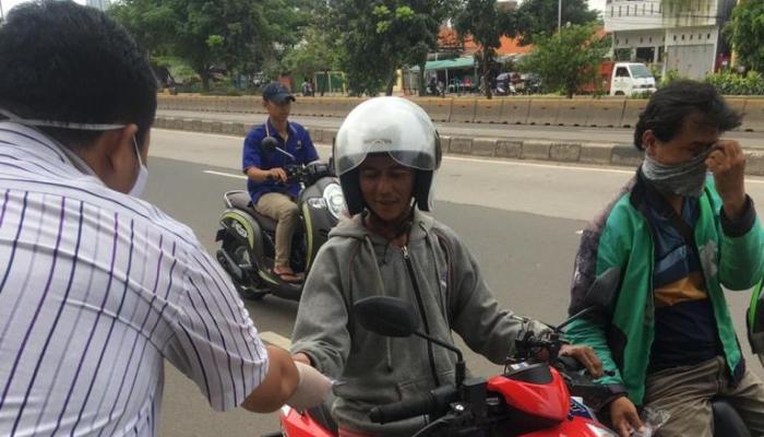 Dalam proses pembagian yang di lakukan, ia juga tetap menerapkan physical distancing atau menjaga jarak dengan orang lain dengan jarak aman 1-2 meter.