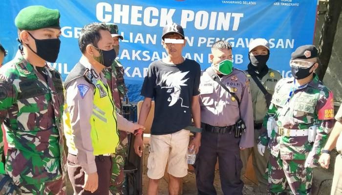 Palapanews.com- Seorang pengendara sepeda motor berinisial RA dibekuk petugas posko Checkpoint Pembatasan Sosial Berskala Besar (PSBB) Islamic Center wilayah Hukum Koramil 02/Curug, Kabupaten Tangerang.