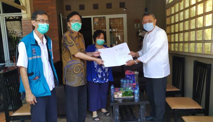 Palapanews.com- Jimmy Sapoetra, pasien Covid-19 kedua di Tangsel, yang telah dinyatakan negatif akhirnya diberikan surat keterangan bebas Covid-19 oleh Pemerintah Kota (Pemkot) Tangsel melalui Wakil Walikota Tangsel, Benyamin Davnie di Regency Melati Mas, Serpong Utara, Tangsel, Jumat (12/6/2020).