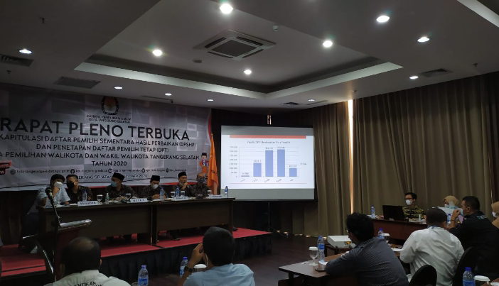 Palapanews.com- Komisi Pemilihan Umum (KPU) secara resmi menetapkan Daftar Pemilih Tetap (DPT) untuk pemilihan Walikota dan Wakil Walikota Tangsel, dalam rapat pleno tersebut digelar di Soll Marina Hotel, Serpong Utara, Tangsel, pada Kamis (15/10/2020).