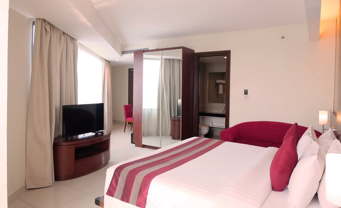 Promo spesial harga khusus untuk tamu yang menginap berlaku untuk tipe kamar Junior Suite. Anda akan mendapatkan sarapan untuk 2 orang, personal protection kit (hand gloves dan face masker), dan free Wi-Fi.