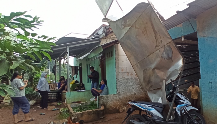 Terlihat rumah Budiman pun nampak hancur hingga batu-batu berukuran besar dari atap rumahnya berada di ruang tamu. Selain itu, satu unit sepeda motor Honda Beat dibagian depannya hancur tertimpa puing papan reklame.