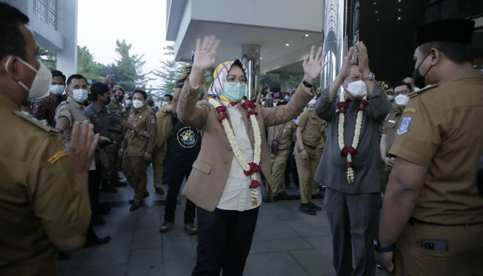 Palapanews.com- Jabatan Walikota Tangsel yang diemban Airin Rachmi Diany resmi berakhir, Selasa (20/4/2021). Seluruh OPD maupun Camat, Lurah dan forkopimda Tangsel berkumpul di halaman Balai Kota Tangsel untuk memberikan ucapan rasa terima kasih ataupun memberikan semangat kepada Airin.