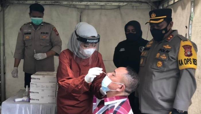 Palapanews.com- Polres Tangsel melalui Satuan Lalu Lintas (Satlantas) Polres Tangsel melakukan tes swab antigen kepada pengendara di dua titik penyekatan selama arus balik mudik lebaran.