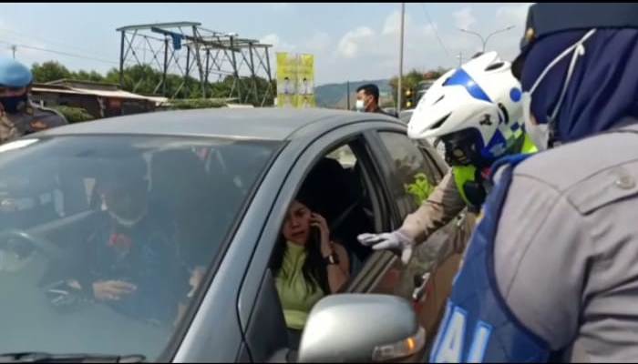 Seperti yang terlihat dalam video yang beredar di media sosial, ada seorang wanita yang nekat melawan petugas ketika akan diputar balikan di Pos Penyekatan Ciwandan di Jalan Lingkar Selatan (JLS), Minggu (16/5/2021).