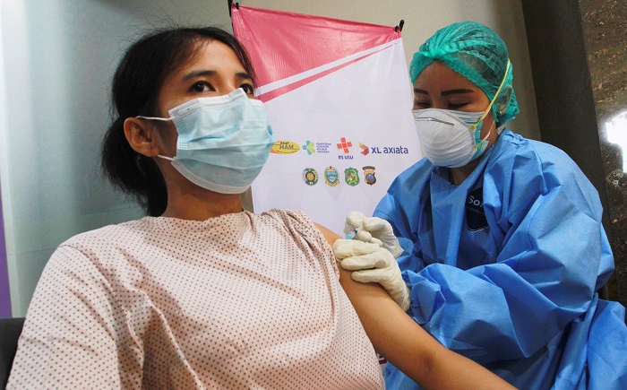 Diakui Group Head XL Axiata West Region Desy Sari Dewi, antusias masyarakat cukup tinggi untuk mendapatkan suntikan vaksin Covid-19. Dalam satu hari, maksimal bisa melakukan penyuntikan kepada 700 warga, dan kuota untuk satu hari selalu habis.