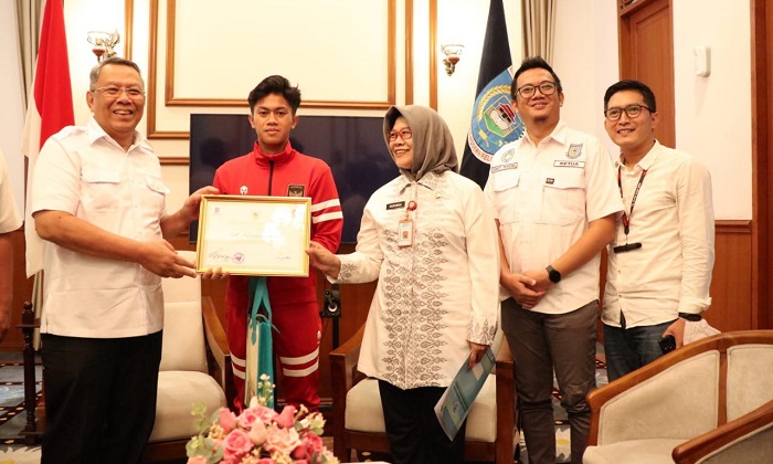 Palapanews.com- Pemerintah Kota Tangerang Selatan memberikan apresiasi kepada Muhammad Kafiatur Rizky, Pemain Timnas Indonesia U-16 yang mencetak gol tunggal ke gawang Vietnam di Final AFF U-16.