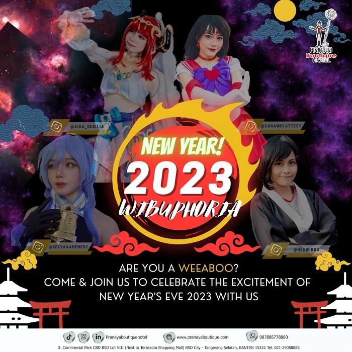 Palapanews.com – Merayakan Tahun Baru 2023, Pranaya Boutique Hotel BSD City memeriahkannya dengan acara yang berbeda mengangkat tema “Wibuphoria” yaitu sebuah konsep cosplay party, yang digemari para fans anime jepang (wibu) dengan nuansa anime style.