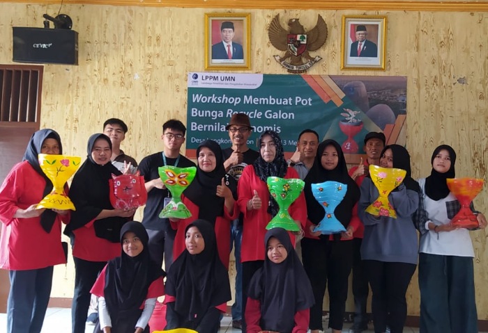 PKM Kampus UMN Bareng Remaja Lengkong Kulon Sulap Limbah Galon Jadi Pot Bunga