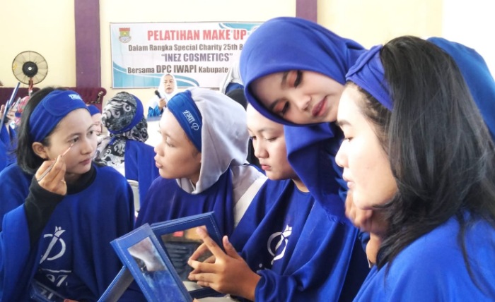Seriusnya lima puluh orang peserta mengikuti step by step instruksi dari tutor yang dipimpin oleh Sri Endah, Ketua DPC IWAPI Kabupaten Tangerang beserta timnya. Hingga selesai pelatihan, seluruh peserta tampak gembira bisa pulang dengan wajah lebih cantik dan membawa bekal ilmu merias serta bingkisan kosmetik cuma-cuma dari Inez Cosmetics.