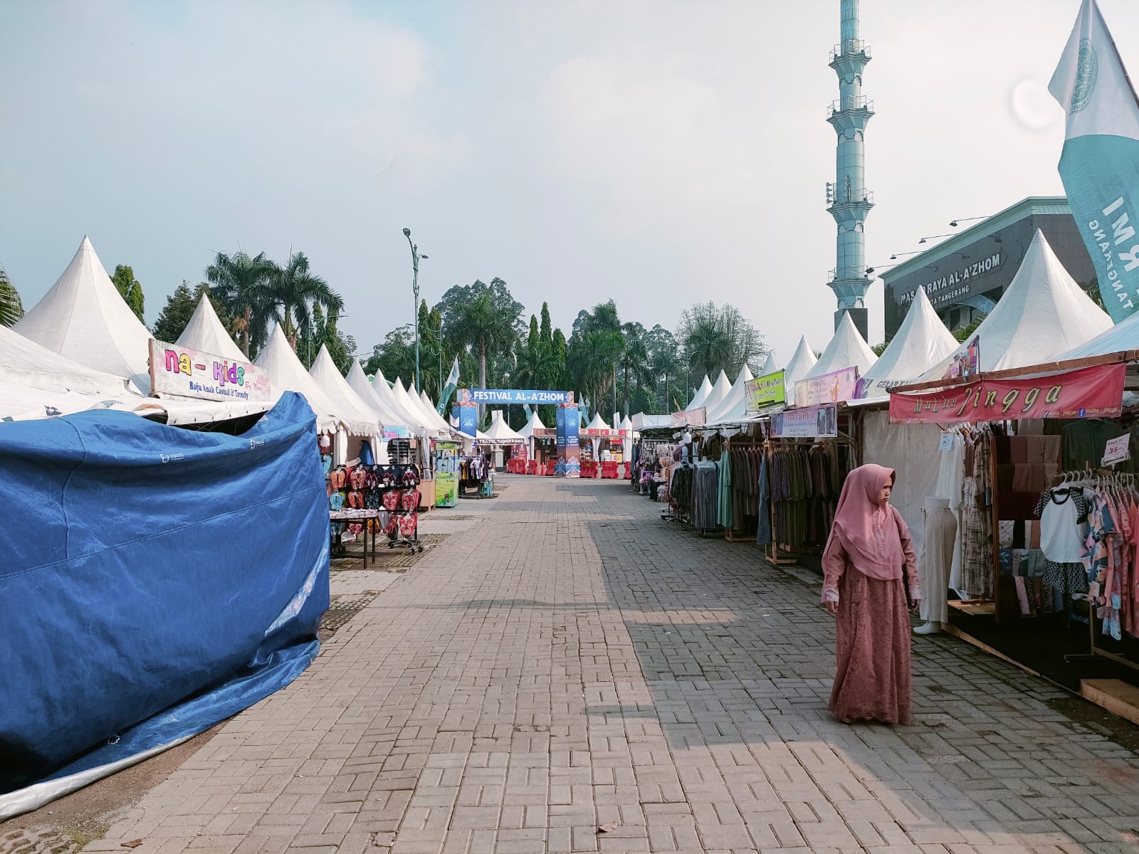 Berdasarkan pantauan di lapangan, halaman Masjid Al A’zhom di ramaikan dengan berdirinya puluhan tenda-tenda kerucut. Tenda-tenda kerucut tersebut dijadikan sebagai sarana untuk berjualan mulai dari produk-produk pakaian hingga berbagai macam kuliner untuk menjamu masyarakat yang datang ke Festival Al A’zhom.