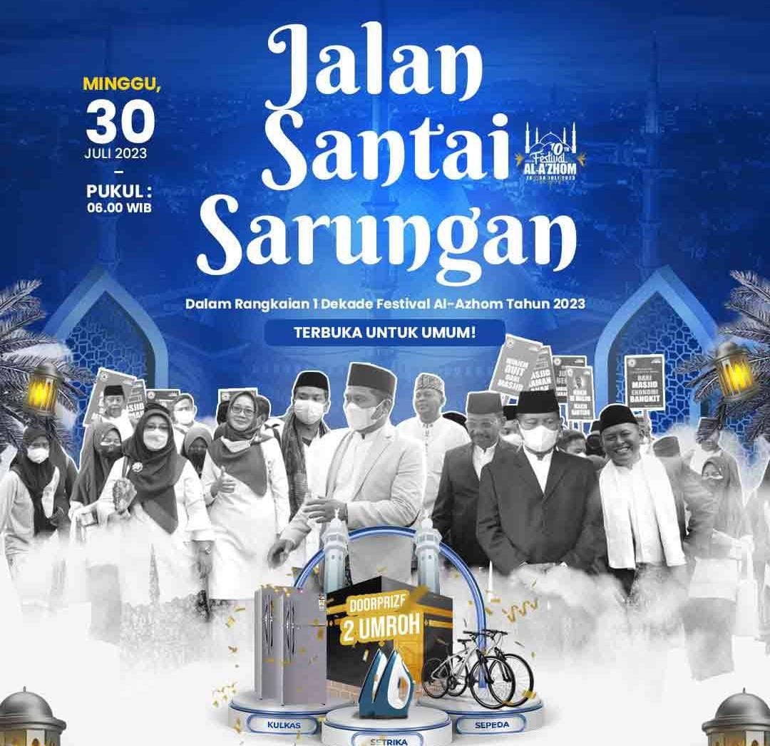 Jalan Sehat Sarungan ini merupakan salah satu rangkaian dari Festival Al A’zhom dengan titik start di depan Pusat Pemerintahan Kota Tangerang, Minggu, 30 Juli 2023.