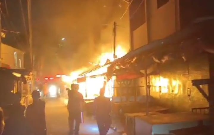 Palapanews.com– Bangunan semi permanen yang berlokasi di Kawasan Pasar Lama, Kelurahan Sukasari, Kecamatan Tangerang, Kota Tangerang di lalap si Jago Merah, Sabtu, 23 September 2023.