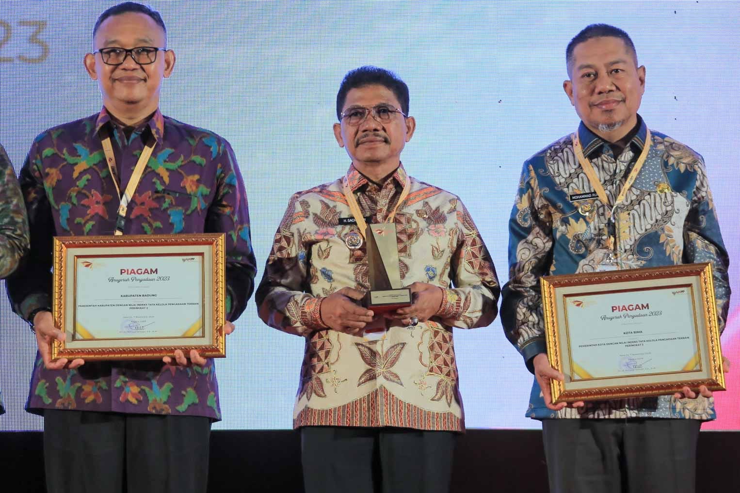 Wakil Wali Kota Tangerang, Sachrudin, menerima langsung penghargaan yang diberikan oleh Kepala LKPP, Hendrar Prihadi, dalam acara Anugerah Pengadaan tahun 2023 dan Rakornas Pengadaan LKPP 2023.