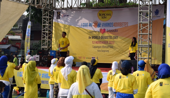 Palapanews.com- Menyambut Hari Diabetes Sedunia yang jatuh pada 14 November, Tropicana Slim berkolaborasi dengan RSCM-FKUI (Rumah Sakit Cipto Mangunkusumo – Fakultas Kedokteran Universitas Indonesia) dan Komunitas Sobat Diabet kembali menyelenggarakan kampanye #Hands4Diabetes2023 di Lapangan Lapangan Ahmad Yani, Kota Tangerang pada Minggu (12/11/2023).