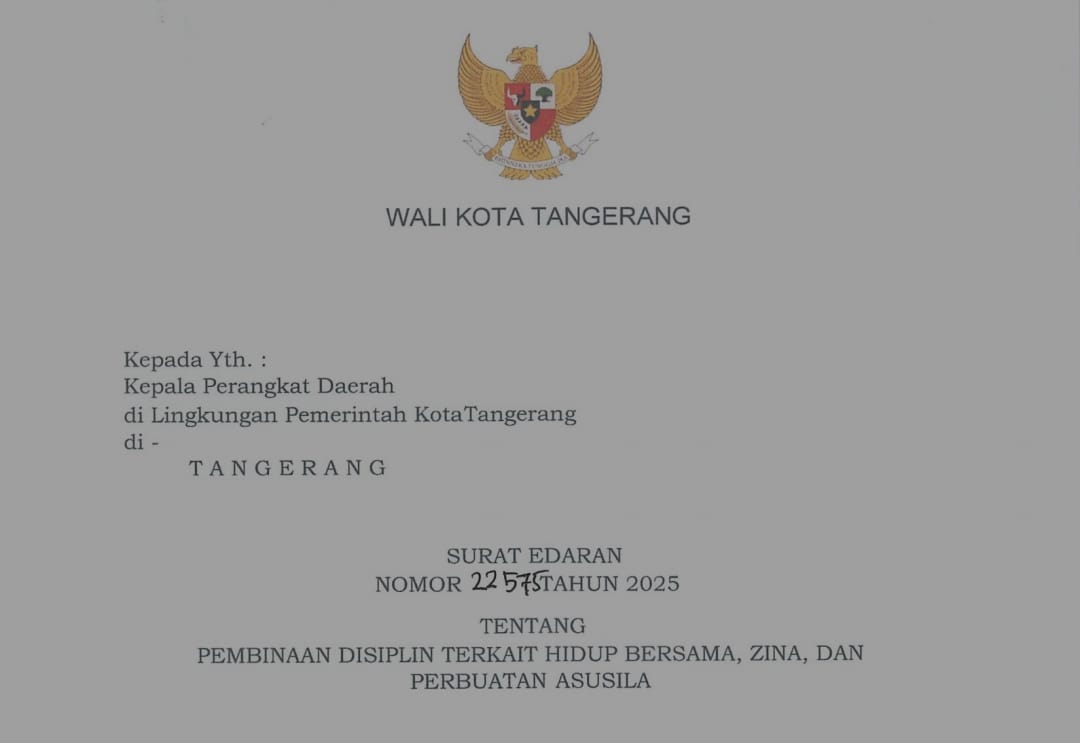 Surat Edaran dengan Nomor 22575 tahun 2025 ini ditujukan kepada Kepala Perangkat Daerah di Lingkungan Pemerintahan Kota Tangerang yang dikeluarkan oleh Wali Kota Tangerang pada 18 Juli 2025.
