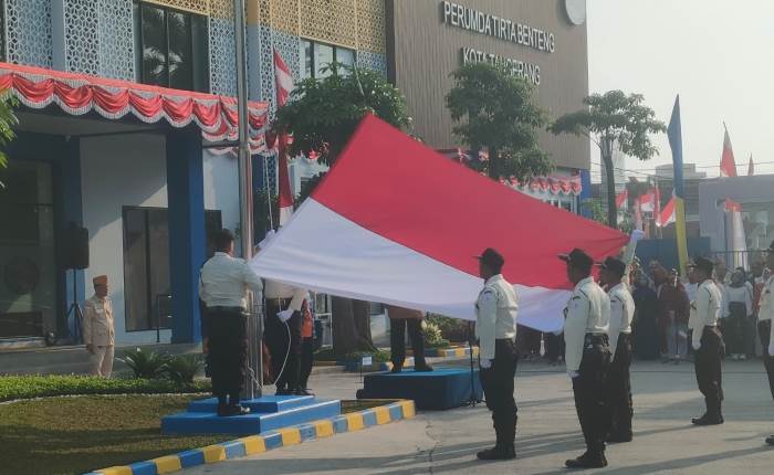 Palapanews.com- Memperingati HUT RI ke-80, ratusan pegawai Badan Usaha Milik Daerah (BUMD) milik Pemerintah Kota (Pemkot) Tangerang mengikuti Upacara Bendera di Kantor Perumda Tirta Benteng Kota Tangerang.