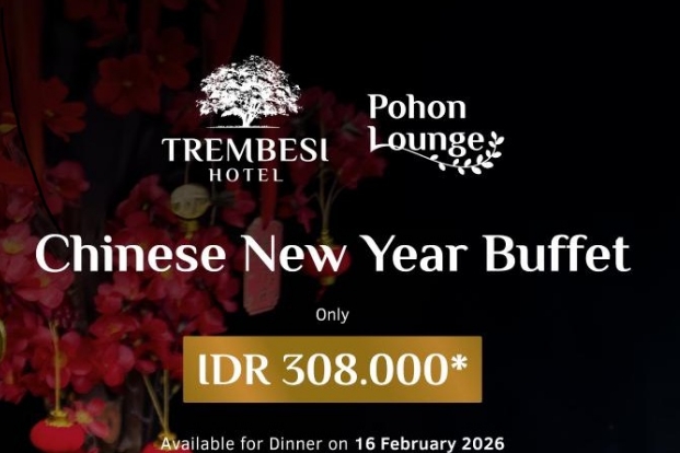 Harga Chinese New Year Dinner di Trembesi Hotel dibanderol Rp 308.000 net per orang, dengan opsi paket menginap (eat and stay) bagi tamu yang ingin merasakan pengalaman lebih lengkap.