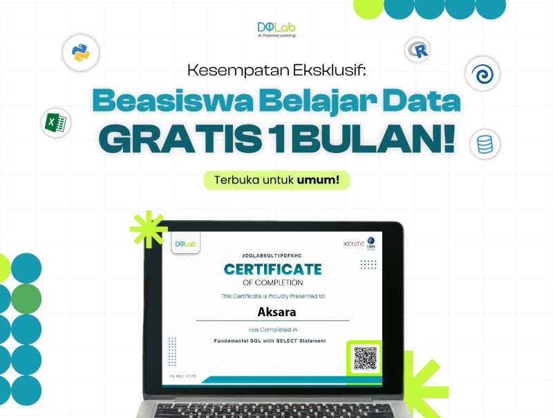 Dengan memiliki kemampuan data analytics, seseorang tidak hanya meningkatkan kompetensi teknis, tetapi juga memperkuat posisi dan peluang kariernya di masa depan. Di era yang semakin kompetitif ini, kemampuan membaca dan memanfaatkan data bukan lagi keunggulan tambahan melainkan keharusan. Mulai belajar data analytics sekarang melalui beasiswa DQLab, klaim beasiswamu disini: https://bit.ly/DQMEDIA. (rls/bd)