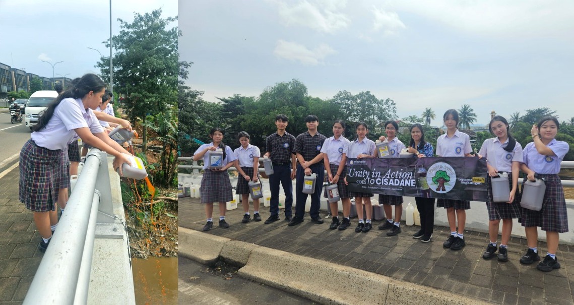 Community School – Unity in Action sebagai bentuk komitmen terhadap edukasi tentang restorasi lingkungan Sekolah Santa Laurensia. Adapun kegiatan penuangan Eco Enzyme kali ini di Kawasan Sungai Jeletreng aliran Cisadane dilakukan secara bertahap sesuai tata laksana kebutuhan ekologi sungai pada Minggu, 8 Maret 2026.