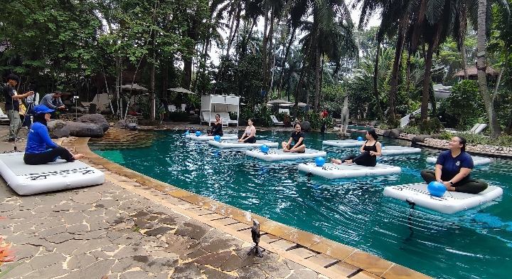 Mengusung konsep holistik, acara ini menghadirkan pengalaman unik melalui sesi Aquamat Yoga & Pilates yang diselenggarakan di area Lagoon Pool yang asri dan menenangkan. Puluhan peserta turut meramaikan kegiatan ini, pada Sabtu, 25 April 2026.